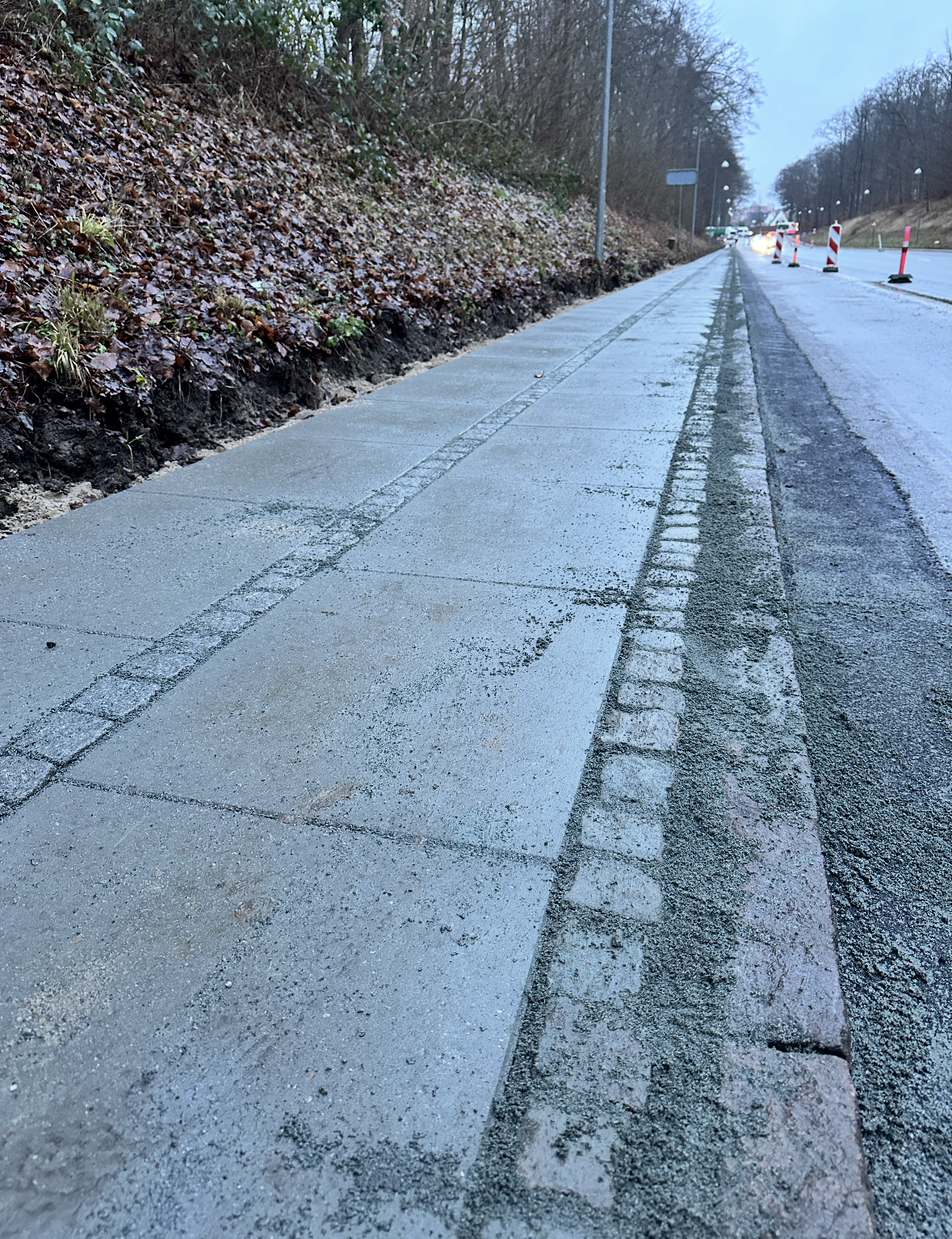 Resultatet er en strækning, der i dag fremstår med en flot og ensartet finish, som spiller naturligt sammen med de grønne områder og de historiske rammer. Vi har leveret et stykke solidt håndværk, der sikrer god tilgængelighed for byens borgere i mange år frem.